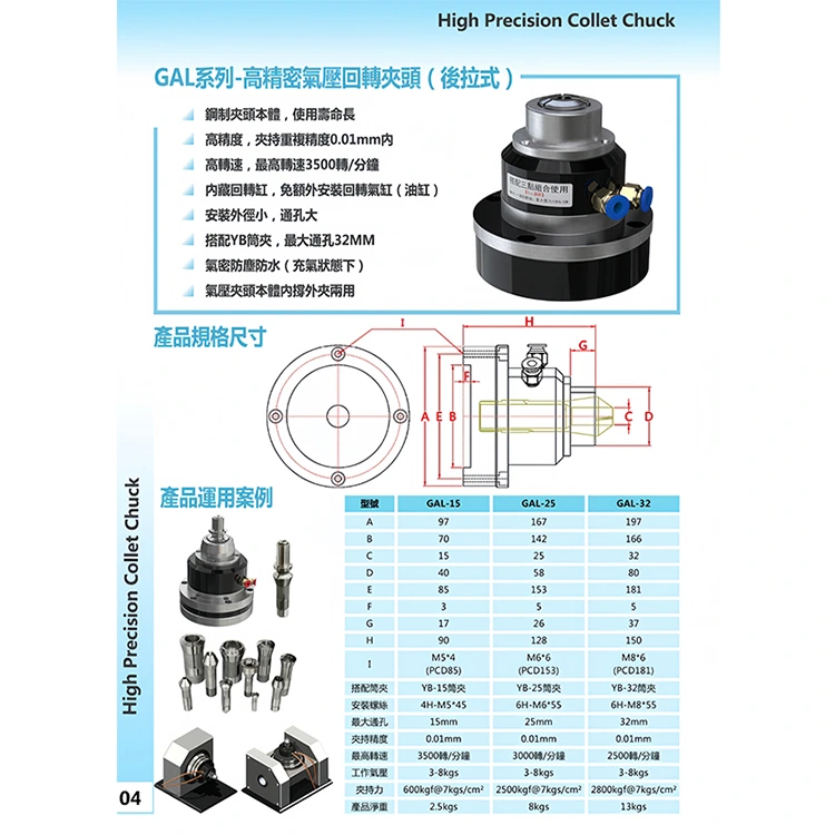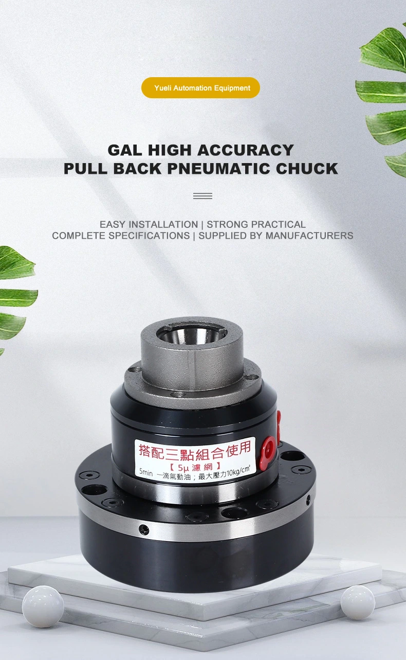 Gal-25 minangka chuck pneumatik sing dhuwur. Iku kalebu jinis chuck, sing asring digunakake ing mesin CNC, mesin penggilingan presisi lan peralatan mesin tliti liyane, kanthi akurat clamping sing dhuwur, bisa ngasilake proses kerja kanthi otomatis