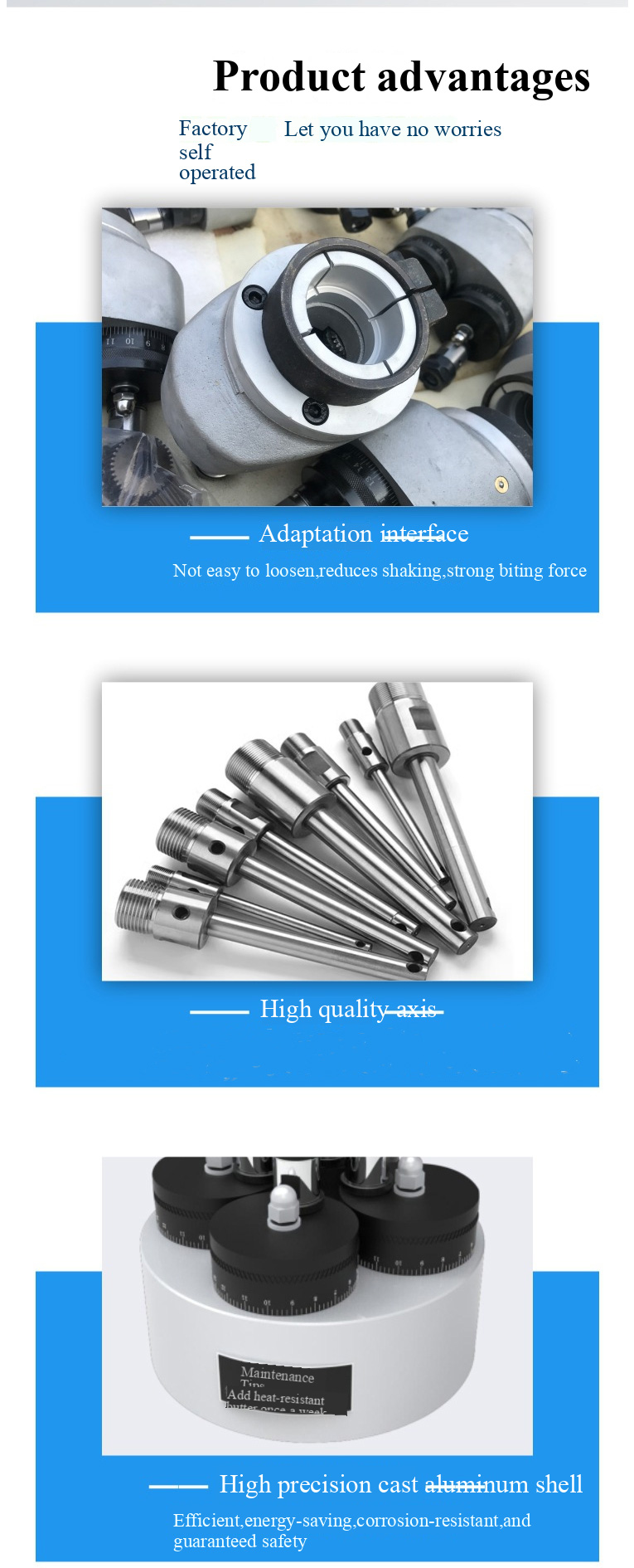 Pengeboran multi-spindle, umume dikenal minangka pengeboran multi-bolongan, mesin pengeboran multi-spindle, alat mesin multi-spindle utawa kepala pangolahan macem-macem jinis. Nyatane, yaiku Chuck Head sing diinstal ing pengeboran mesin, lan bisa uga proses bagean sing dilatih utawa dipasang ing rong utawa luwih akeh poros, saengga diarani mesin multi sumbu. Pengeboran multi bisa bebarengan proses macem-macem bolongan ing pesawat siji lan bisa diinstal ing macem-macem mesin pengeboran kayata bench penggerek lan kepala tenaga kanggo nggunakake. Iki minangka aksesoris alat mesin sing efisien sing nambah efisiensi lan nyuda biaya, lan kualitas produk sing wis diproses stabil.